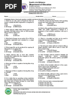 Test Name: ________________________________________________________________ Score: Yr,/Sec. _______________________________________________________________ I. Read the questions carefully. Choose the letter of the correct answer and write it on the space provided. _____1. A logical procedure or set of steps to be followed to arrive at a solution to a problem. a. flowchart b. algorithm c. equations d. operator _____2. The looping mechanism in flowcharting. a. accumulator b. Counter c. iteration d. Programming _____3. The graphical representation of an algorithm. a. flowchart b. Algorithm c. Pseudo code d. none of these _____4. It means detecting, locating and correcting bugs. a. translation b. debugging c. Programming d. documentation _____5. A step-by-step instructions that tells or directs the computer what to do. a translation b. debugging c. Programming d. program _____6. It is the violation of the rule set by programming language used in a certain program. a. bugs b. debugging c. error d. Syntax error _____7. These are values that do not change during the execution of the program. a. variable b. integer c. float d. constant _____8. An algorithm in English statements in an outline form. a. pseudo code b. flowchart c. menu d. program _____9. The set of rules to follow in a programming language. a. syntax b. Direction c. Formula d. code _____10. A person who designs a computer program. a. technician b. analyst c. engineer d. programmer _____11. The following are considered as object - oriented programming language, except: a. COBOL b. Visual Basic c. Java d. C++ _____12. A named area in the memory which holds temporary data. a. variable b. integer c. float d. constant _____13. It can be a mouse click, a key press, a menu selection, or an internal Windows activity. a. float b. constant c. range d. event _____14. The process of giving instructions to the computer. a. pseudo code b. flowchart c. menu d. program _____15. These are the error or mistakes in programming. a. bugs b. debugging c. error d. Syntax error _____16. The level of Programming language that uses translator to convert the program into machine language. st nd rd th a. 1 GL b. 2 GL c. 3 GL d. 4 GL _____17. The lowest level of programming language. a. Assembly Language b. High Level Language c. Machine Language d. None of these _____18. Level of programming language that uses mnemonic codes. a. Assembly Language b. High Level Language c. Machine Language d. None of these _____19. It is the operator used to compare two values for similarity. a. <> b. < c. > d. = _____20. It is a register that is used to count the number of occurrences of an event. a. accumulator b. Counter c. iteration d. Programming Test II. Solve and Evaluate the following: 1. 2. 3. 4. 5. 8*5+40/5<100 OR 150>220 35>53 OR 53<35 AND 45=7*5 775>700 AND 205>100 24/6>2*2 AND 18<110 OR 17>14 81/9=3*3 OR 25/5>5*5 = = = = = __________________________________ __________________________________ __________________________________ __________________________________ __________________________________