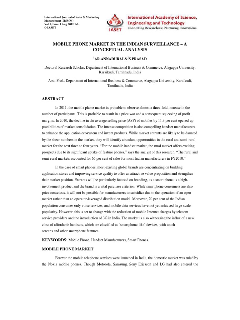 Mobile Phone Market in the Indian Surveillance A Conceptual Analysis