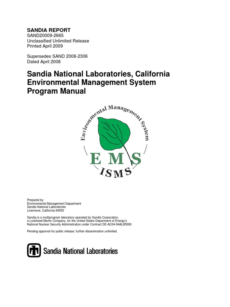 Sandia National Laboratories, California Environmental Management System Program Manual