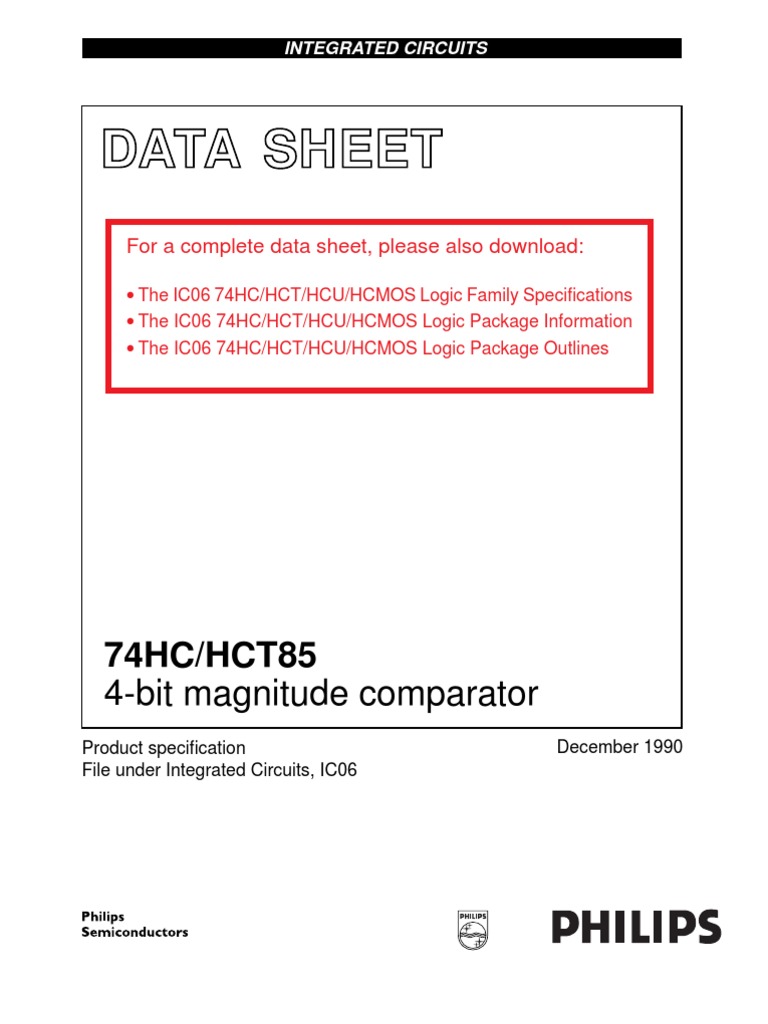 APPLICATIONS Process controllers Servo-motor control FUNCTION TABLE COMPARING INPUTS A3, B3 A3>B3 A3<B3 A3=B3 A3=B3 A3=B3 A3=B3 A3=B3 A3=B3 A3=B3 A3=B3 A3=B3 A3=B3 A3=B3 A3=B3 Notes 1. H = HIGH voltage level L = LOW voltage level X = dont care A2, B2 X X A2>B2 A2<B2 A2=B2 A2=B2 A2=B2 A2=B2 A2=B2 A2=B2 A2=B2 A2=B2 A2=B2 A2=B2 A1, B1 X X X X A1>B1 A1<B1 A1=B1 A1=B1 A1=B1 A1=B1 A1=B1 A1=B1 A1=B1 A1=B1 A0, B0 X X X X X X A0>B0 A0<B0 A0=B0 A0=B0 A0=B0 A0=B0 A0=B0 A0=B0 IA>B X X X X X X X X H L L X H L CASCADING INPUTS IA<B X X X X X X X X L H L X H L IA=B X X X X X X X X L L H H L L QA>B H L H L H L H L H L L L L H OUTPUTS QA<B L H L H L H L H L H L L L H QA=B L L L L L L L L L L H H L L