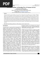 ABSTRACT The development and the increasing progress that is being experienced in the Information and Communication Technology have brought about a lot of changes in almost all facets of life. In the Banking Industry, it has been in the form of online banking, which is now replacing the traditional banking practice. Online banking has a lot of benefits which add value to customers satisfaction in terms of better quality of service offerings and at the same time enable the banks gain more competitive advantage over other competitors. There are some associated risks identified in the study that seem to hinder the success of e-banking services and thus constitute major concern to both financial institutions and customers. Keywords: Communication Technology, Banking, Services,