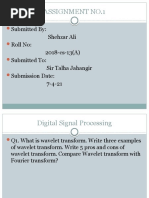 ABSTRACT: In numerical analysis and functional analysis, a discrete wavelet transform (DWT) is any wavelet transform for which the wavelets are discretely sampled. In this paper, there are given fundamental of DWT and implementation in MATLAB. Image is filtered by low pass (for smooth variation between gray level pixels) and high pass filter (for high variation between gray level pixels). Image is decomposed into multilevel which include approximation details (LL subband), horizontal detail (HL subband), vertical (LH subband) and diagonal details (HH subband). Keywords: Discrete Wavelet Transform (DWT), MATLAB, high pass filter, low pass filter. I. INTRODUCTION The transform of a signal is just another form of representing the signal. It does not change the information content present in the signal. Fourier Transmission (FT) representations do not include local information about the original signals. Although the WFTs can provide localization information, they do not provide flexible division of the time-frequency plane that can track slow changing phenomena while providing more details for higher Frequencies. The wavelet representation was introduced to correct the drawback of the former two methods using a multi-resolution scheme. The Wavelet Transform provides a time-frequency representation of the signal. A wavelet series is representation of a square-integral (real or complex value) function by a certain orthonormal (two vectors in an inner product space are orthonormal if they are orthogonal (when two things can very independently or they are perpendicular) and all of unit length).