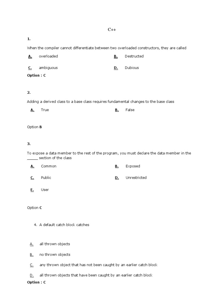 1. When the compiler cannot differentiate between two overloaded constructors, they are called A. C. overloaded ambiguous B. D. Destructed Dubious