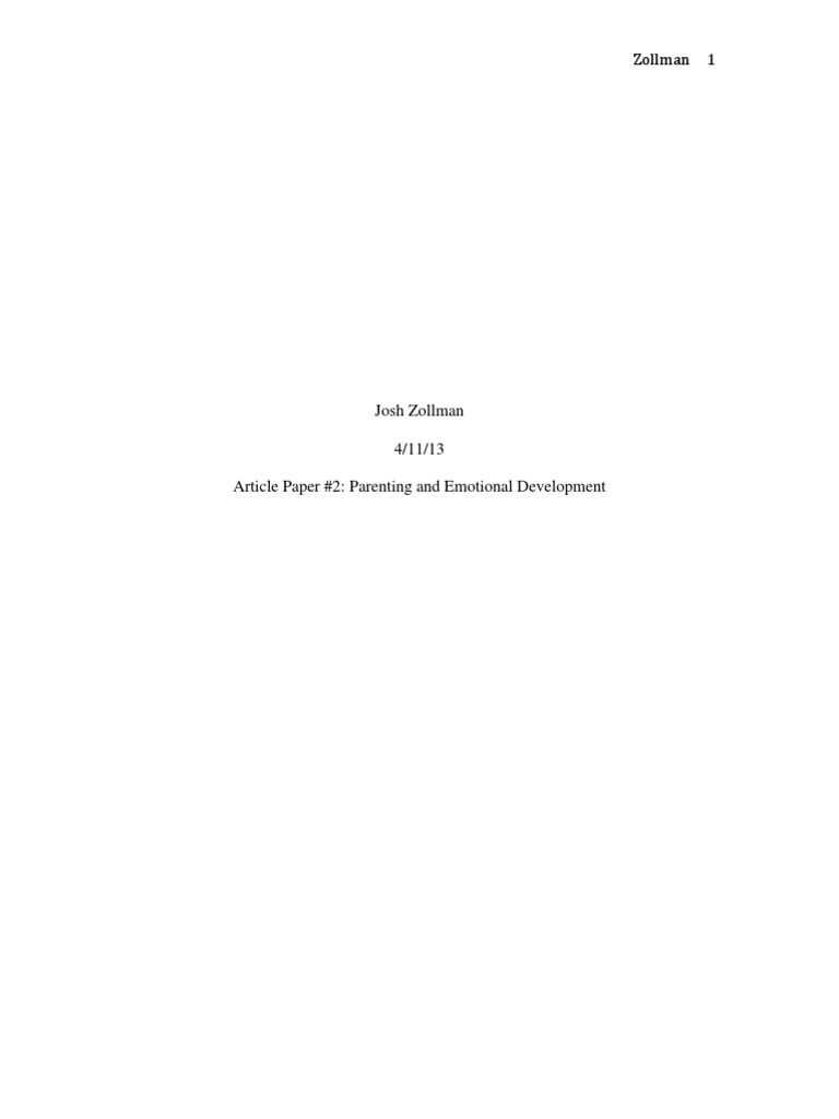 Josh Zollman 4/11/13 Article Paper #2: Parenting and Emotional Development