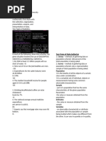Divide population into groups Random sample of groups is chosen Count every unit in each and every group selected Example: Divide entire city into "city blocks" Random sample of blocks is chosen Count every person in each city block selected #5 Nonrandom/Convenience Sample Example: Interview people in a shopping mall. This is nonrandom because not everyone in the population goes shopping at the mall. People who are wheelchair-bound are less likely to visit the mall. This is also the case with people who have problems walking. Also, the mall may be too far away for those who don't have cars. If the interview is done during a weekday, people who work are unlikely to be at the mall (housewives and retirees are more likely to be interviewed on weekdays). VALIDITY: You are actually measuring what you want to measure. Example: if IQ really measures intelligence, then IQ is high in validity. If it does not actually measure intelligence, then it is low in validity. RELIABILITY: Refers to stability of measurement. Example: A research instrument is high in reliability if it gives consistent readings when it is used on the same subject even if the subject is measured at different times. Example of a "research instrument" is a survey questionnaire. MEASURES OF CENTRAL TENDENCY (used to summarise a dataset) 1. Arithmetic Mean - affected by extreme values 2. Median 3. Mode MEASURES OF DISPERSION (used to determine how spread out a dataset is) 1. Range - difference between highest and lowest values 2. Inter-quartile range - difference between the first and third quartiles 3. Variance 4. Standard Deviation - the higher the Standard Deviation, the more spread out the data. The Standard Deviation is the square root of the Variance. THE STANDARD DEVIATION IS A VERY IMPORTANT MEASURE - Under a Standardised Normal Curve, 68.3% of the data are found +1 or -1 standard deviation from the mean 95.5% of the data are found +2 or -2 standard deviations from the mean 99.7% are found +3 or -3 standard deviations from the mean