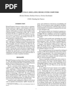 output is classical information that can be printed out on a piece of paper, and published in Physical Review. Notice that the algorithm performed by the quantum computer is a probabilistic algorithm. That is, we could run exactly the same program twice and obtain di erent results, because of the randomness of the quantum measurement process. The quantum algorithm actually generates a probability distribution of possible outputs. (In fact, Shor's factoring algorithm is not guaranteed to succeed in nding the prime factors; it just succeeds with a reasonable probability. That's okay, though, because it is easy to verify whether the factors are correct.) It should be clear from this description that a quantum computer, though it may operate according to di erent physical principles than a classical computer, cannot do anything that a classical computer can't do. Classical computers can store vectors, rotate vectors, and can model the quantum measurement process by projecting a vector onto mutually orthogonal axes. So a classical computer can surely simulate a quantum computer to arbitrarily good accuracy. Our notion of what is computable will be the same, whether we use a classical computer or a quantum computer. But we should also consider how long the simulation will take. Suppose we have a computer that operates on a modest number of qubits, like N = 100. Then to represent the typical quantum state of the computer, we would need to write down 2N = 2100 1030 complex numbers! No existing or foreseeable digital computer will be able to do that. And performing a general rotation of a vector in a space of dimension 1030 is far beyond the computational capacity of any foreseeable classical computer. (Of course, N classical bits can take 2N possible values. But for each one of these, it is very easy to write down a complete description of the con guration | a binary string of length N . Quantum information is very di erent in that writing down a complete description of just one typical con guration of N qubits is enormously complex.) So it is true that a classical computer can simulate a quantum computer, but the simulation becomes extremely ine cient as the number of qubits N increases. Quantum mechanics is hard (computationally) because we must deal with huge matrices { there is too much room in Hilbert space. This observation led Feynman to speculate that a quantum computer would be able to perform certain tasks that are beyond the reach of any conceivable classical computer. (The quantum computer has no trouble simulating itself!) Shor's result seems to bolster this view.