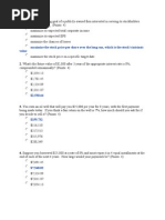 Q. If my capital structure is optimized, what also should be optimized? A. Return on Equity. Basically you have the optimal amount of equity to produce your net income. Q. Define cash earnings per share. A. Cash Earnings=NI+Depreciation and Amortization+Deferred Taxes. Q. A company is listed as an ADR on an American exchange. The ration of shares on the home exchange to ADR shares is 6 for 1. If the ADR earnings per share is $6 what is the EPS for a share listed on the home exchange? A. $1, treat as if a 6 for 1 stock split occurred. Q. Suppose you have a company where EBITDA has been rising for the past several years and that company suddenly declares bankruptcy, name some reasons for why that could have happened? A. Companies declare bankruptcy because they have no cash (liquidity crunch); the best answer would be to walk down the cash flow statement and describe how each of the sections could contribute to a bankruptcy filing: - Working capital crunch (receivables could be rising; could be getting pushed on payables; might be required to build significant inventory) - Capex requirements could be large (ie telecom) - Might not be able to refinance a maturing issue - Litigation (ie Philip Morris posting tobacco bond) Q. You are looking at acquiring a company, but that company has a negative book value of equity. Is this a big deal? A. You would want to see why the BV of equity is negative, and there could be several reasons: - Could be from negative net income over the past several years - this might a problem from an operational perspective - Might be due to a write-down of assets - would want to understand this but might not be as bad a recurring negative net income - Firm might have levered up to issue a large dividend - will leverage be an issue going forward? Q. Which will place a higher value on the company, equity comparables or M&A comparables and why? A. M&A comparables will be higher due to a control premium that must be paid and synergies expected to be derived from the deal