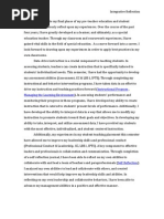 parents, etc.), as well. Being able to share responsibility and ownership over this new system, I hope, will help us effectively implement it. It was nice to be able to communicate and collaborate with another teacher who spends much time with this student. It helped give both of us a more through understanding of the students needs, and allowed us to develop a plan of action successfully. Journal 4: February 15th, 2013 Each day, I teach two fifth grade students in a pullout group for spelling, math, and intervention. During the intervention block, an aide helps me teach the students. Over the past few weeks, the aide and I have been separating into two oneon-one groups during this time. This allows us to better meet each students needs because each student is reading at a very different level. I have been doing the planning for both groups for this intervention block, though. I complete a reading folder for the other group that includes that weeks lessons and materials. This week, the other groups (with the aide) finished the materials early on Wednesday. Thus, on Thursday, there was no lesson or materials for this group to do. This situation was detrimental to the students learning because I was forced to come up with a plan very quickly. The materials were not prepared and the lesson was not as complete or planned as it could have been. In this situation, I believe that both the aide and I were not collaborating effectively. It would have been helpful for the aide to communicate with me about the lack of materials for the next day. If the aide told me that the student had finished early, I would have been able to better prepare. On the other hand, I am also at fault for not consistently initiating communication with the aide to ensure I, as the teacher, was aware of what was happening with each of my students. In retrospect, I wish I would have spoken with the aide at the end of each day to make sure the next days lesson was going to be effective and prepared. I believe that there was a lack of collaboration between two teachers and this led to a breakdown in the daily plan. I am now more aware of my role as this groups leader, and will be sure to talk with the aide daily to touch-base. I believe that this kind of consistent collaboration will help to not only ensure that lessons are planned, but it will give me an idea of the