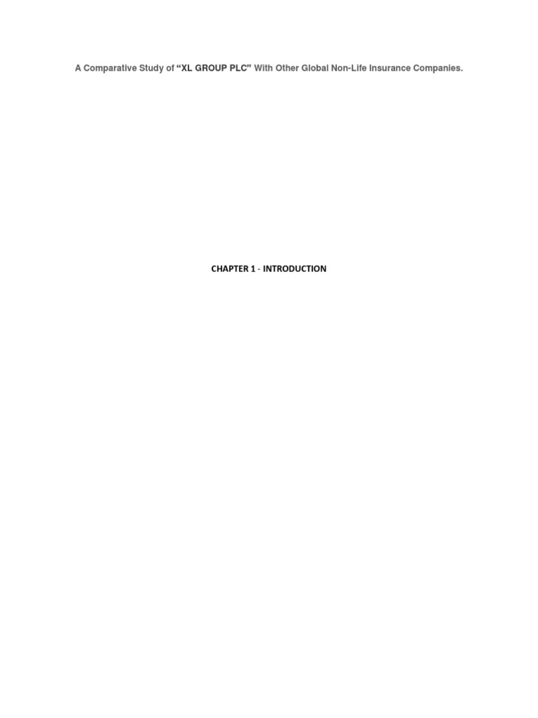 A Comparative Study of XL GROUP PLC With Other Global Non-Life Insurance Companies.