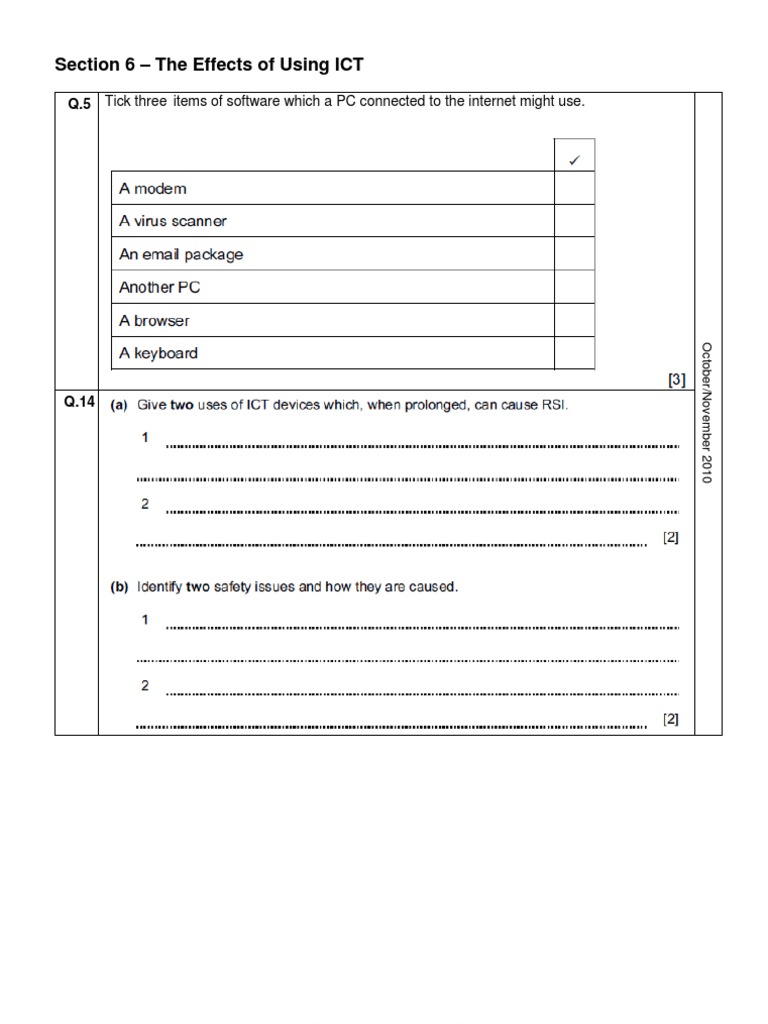 Q.5 Tick three items of software which a PC connected to the internet might use.