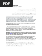 Students will be required to prepare and turn in preproduction materials. Treatments,