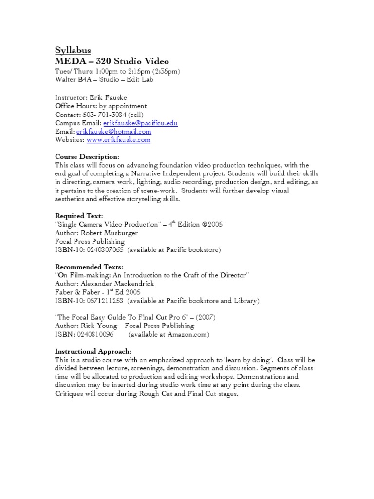 and Rough cuts. Meeting these deadlines is a big part of the class and heavily factor