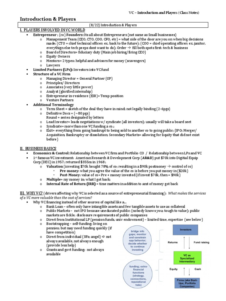 Venture Capital Class Notes