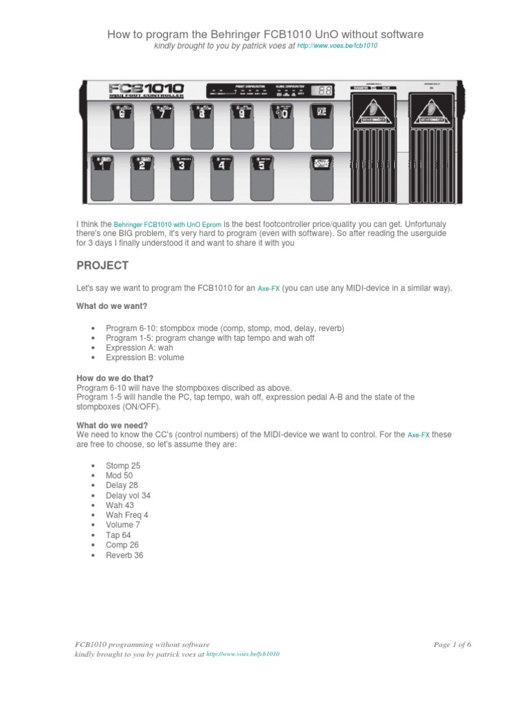 FCB1010 programming without software kindly brought to you by patrick voes at http://www.voes.be/fcb1010