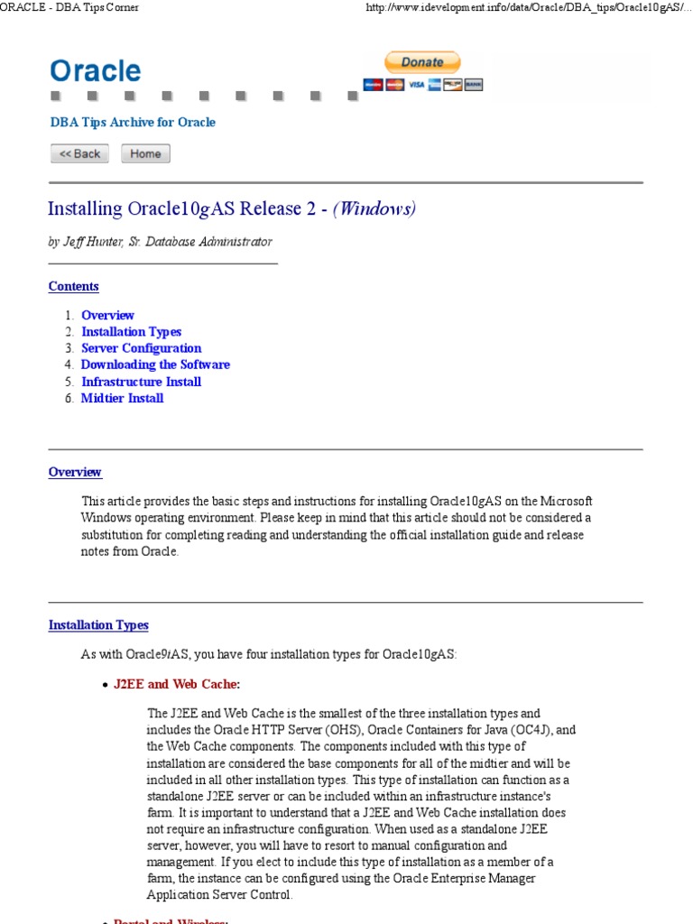 by Jeff Hunter, Sr. Database Administrator Contents 1. 2. 3. 4. 5. 6. Overview Installation Types Server Configuration Downloading the Software Infrastructure Install Midtier Install