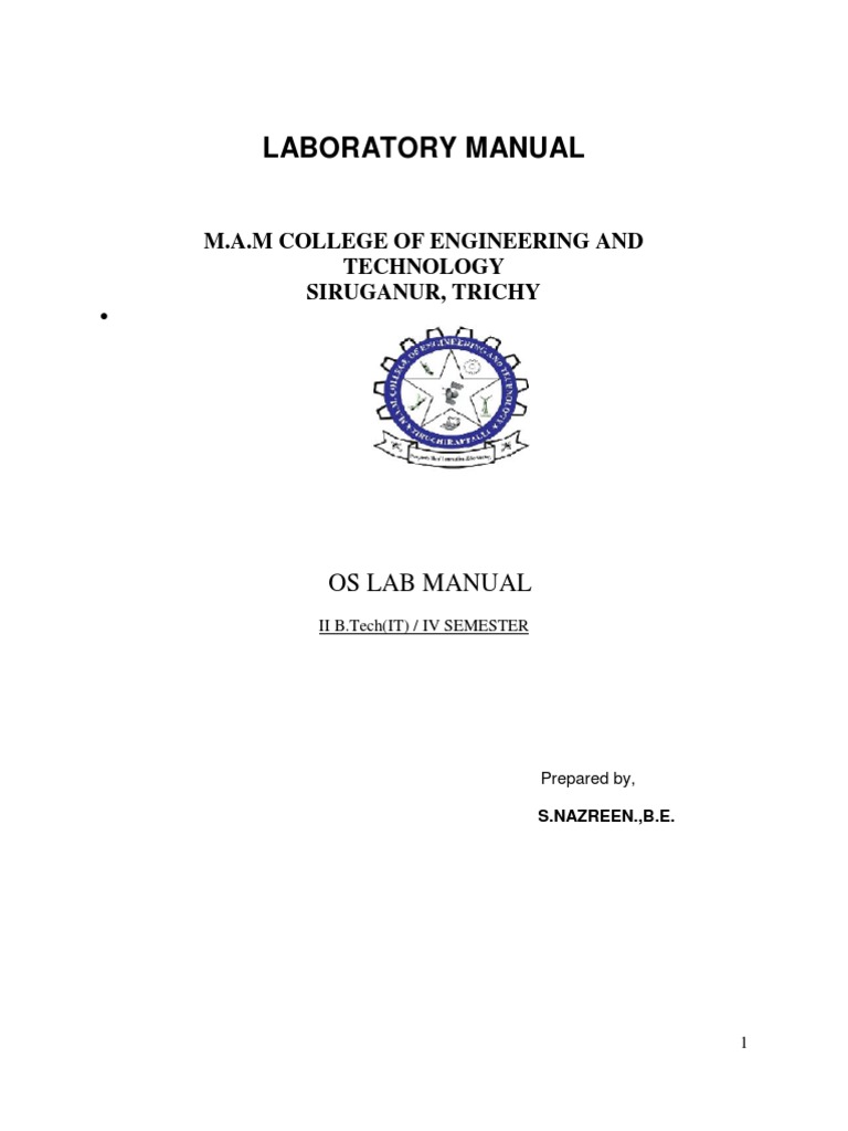 1. Write programs using the following system calls of UNIX operating system: fork, exec, getpid, exit, wait, close, stat, opendir, readdir .Write programs using the I/O system calls of UNIX operating system (open, read, write, etc) 2. Write C programs to simulate UNIX commands like ls, grep, etc. 3. Given the list of processes, their CPU burst times and arrival times, display/print the Gantt chart for FCFS and SJF. For each of the scheduling policies, compute and print the average waiting time and average turnaround time. (2 sessions) 4. Given the list of processes, their CPU burst times and arrival times, display/print the Gantt chart for Priority and Round robin. For each of the scheduling policies, compute and print the average waiting time and average turnaround time. (2 sessions) 5. Developing Application using Inter Process Communication (using shared memory, pipes or message queues) 6. Implement the Producer Consumer problem using semaphores (using UNIX system calls). 7. Implement some memory management schemes I 8. Implement some memory management schemes II 9. Implement any file allocation technique (Linked, Indexed or Contiguous)