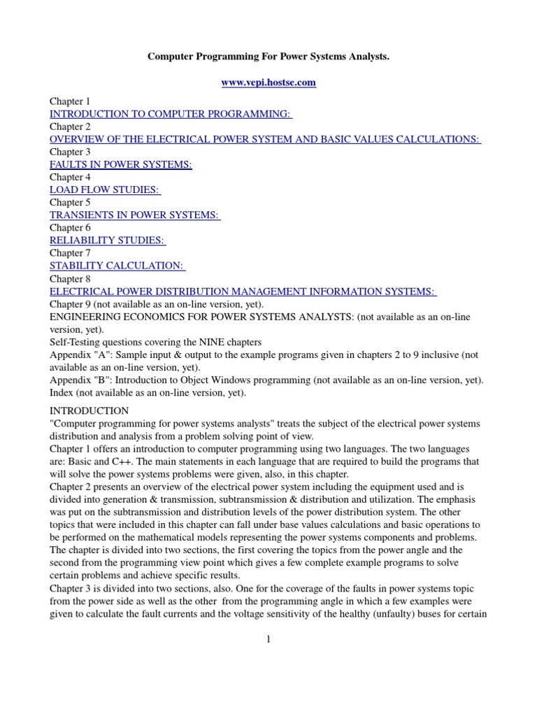 "Computer programming for power systems analysts" treats the subject of the electrical power systems