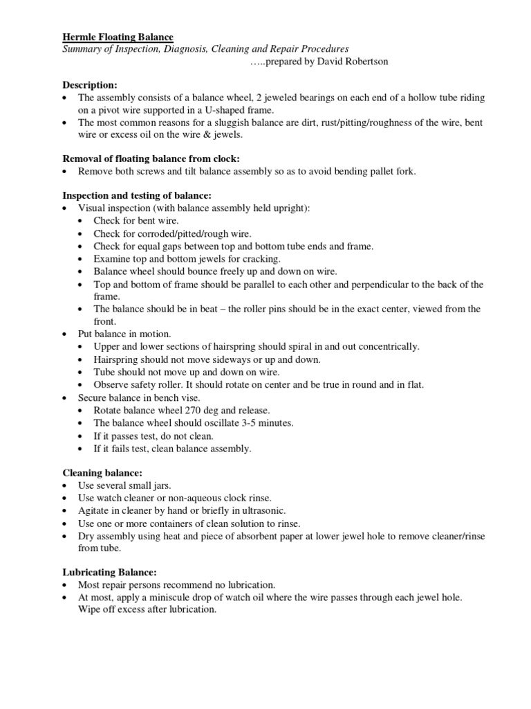 1. “The Floating Balance by Joseph Cerullo, CMW published in Clockmakers Newsletter