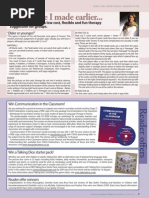 The Enneagram approach is strongly clientcentred because the goal is to understand how the client sees his problem. We are aiming to see through the clients eyes, as it were, and we can make a start on this sometimes even before the client does. Secondly, it is client-initiated. The speech and language therapists role is to facilitate the clients self-understanding by appropriate questioning, encouragement and support. It is a journey of self-discovery and, as with many journeys, travelling is more informative than arriving. But, for all sorts of reasons, some clients do not want to embark on the journey of self-discovery. We need to respect that choice, not least because people vary in their readiness to explore the issues with which the Enneagram deals. Thirdly, it is client-led. Every individual is the best expert on him/herself and, while we can observe behaviour, only the client can tell us whats going on inside. On several occasions I have been surprised to discover how wrong my initial impressions were. The kind of stresses which lie at the root of some dysphonias, for instance, may force people to behave in a very unfamiliar way. I have marvelled at a friends behaviour and remarked, I didnt think she would do that! But thats the point: when people are stressed, they may behave in very unpredictable ways, hence the importance of allowing the client to voice their inner feelings and be guided by them. A key learning outcome from case examples 1-3 is that what is stressful for one client is not for another. If we understand something of a clients personality we can better determine what they will find stressful. The Enneagram is a welcome addition to the therapists armoury of tools. It provides an alternative way of seeing familiar issues and problems. Above all, it helps us to be more overt and objective in an area where we are usually vague and subjective what people SLTP are actually like. Eric Foggitt, speech and language therapist, is Adult Acquired Team Lead for East and Midlothian Community Health Partnership. He offers training in the Enneagram through his independent consultancy (www.9Gscotland. co.uk) as does the Enneagram Institute (www. enneagraminstitute.com). Eric can be contacted by e-mail on info9G@btinternet.com.