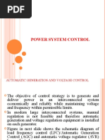 AARUPADAI VEEDU INSTITUTE OF TECHNOLOGY M.E.(POWER SYSTEMS ENGINEERING)/IInd Semester Subject : POWER SYSTEM CONTROL Unit-I: Automatic Generation Control: PART - A 1. What is meant by Control Area in power system? 2. Give the controller specifications of multi area system with secondary ALFC. 3. What is meant by Area Control error? How it is minimized in single area ALFC? 4. Explain the functions of primary and secondary ALFC Loops? 5. Give the advantage of Pool operation in multi area system? 6. The generator 100MW power generation, it has a regulation parameter of R of four percentages (0.04pu). By how much will the turbine power increase if the frequency drops by 0.1HZ with the power reference unchanged? 7. Draw the block diagram of AGC in single area control? 8. Give the requirement of integral controller? 9. The generator has the frequency drop 0.1HZ with generating power output 100MW but the turbine power must remain unchanged, by how should the reference settings be changed? 10. Give the ALFC parameters and its units? 11. State and Explain the necessity of secondary ALFC loop? 12. Give the expression of modeling of tie line between two area systems? 13. Drive the power system model of secondary ALFC ? 14. Explain the Mechanical Analog model of two area power system? 15. Express the composite characteristics of power system?