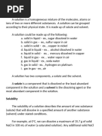 Dissolution is the process by which a solute forms a solution in a solvent. The solute, in the case of solids, has its crystalline structure disintegrated as separate ions, atoms, and molecules form. For liquids and gases, the molecules must be adaptable with those of the solvent for a solution to form. The outcome of the process of dissolution (the amount dissolved at equilibrium, i.e., the solubility) is governed by the thermodynamic energies involved, such as the heat of solution and entropy of solution, but the dissolution itself (a kinetic process) is not. Overall the free energy must be negative for net dissolution to occur. In turn, those energies are controlled by the way in which different chemical bond types interact with those in the solvent. Solid solutions occur in metal alloys and their formation and description is governed by the relevant phase diagram. Dissolution process is of fundamental importance to the description of numerous natural processes on earth, and it is commonly utilized by humans. Dissolution testing is widely used in the pharmaceutical industry for optimization of formulation and quality control.