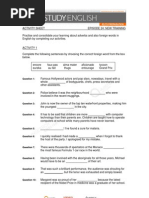 Definite nouns and articles: the A definite noun is used when naming a person, place or thing specifically. DEFINITE NOUNS: THE Use 1. when the reference to the person or thing is known 2. when it refers to something unique 3. when the noun has been referred to before 4. when referring to someones job title 5. with a superlative adjective 6. with time periods 7. with proper nouns that have an of phrase 8. with some geographic names, specifically referring to a group 9. with names of oceans, seas and rivers 10. with regions 11. with names of government departments, organisations 12. with adjectives naming the nationality of a people EXAMPLE The teacher marked our essays in class. Part time English students are entitled to use the library facilities. The sun was bright and almost orange. They chose a school close to the city. The school has an excellent reputation. the chief executive officer Susan got the highest mark in the listening test. the twenty-first century, the winter, the spring, in the morning, the future the University of Technology the Netherlands, the Philippines, the United Kingdom, the Himalayas the Nile, the Yangtze, the Atlantic (Ocean), the Red Sea the West, the South Pole, the Equator the Department of Foreign Affairs, the United Nations the Australians, the Thais