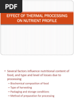 Effects of Processing Discussions of processing and storage effects often focus on industrial processing and storage. However, losses during home preparation/cooking and storage are considerable, and may surpass those incurred in the food industry. Blanching, a mild heat treatment (accomplished with hot water, steam, hot air or microwave) is an important step in the processing of fruits and vegetables. It is done primarily to inactivate potentially harmful enzymes, reduce microbial loads and decrease