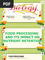 Recommendations for Maximum Retention of Health-promoting Food Components Considering the research findings on the effects of processing and storage of foods on micronutrients and bioactive compounds, the following measures are recommended to maximize retention of these food components. For home preparation and storage: 3 4 5 6 7 8 9 Plant or buy varieties/cultivars rich in micronutrient and bioactive compounds. Store raw fruits and vegetables intact and keep storage time short. Store at refrigerated temperature for more prolonged storage. If sun-drying is needed, protect food from direct sunlight. Avoid peeling fruits and vegetables when the peel is edible. Wash fruits and vegetable before peeling or cutting, not after. Avoid cutting of fruits and vegetables into very small pieces and consume or cook them immediately after peeling, cutting, chopping or pulping. Cook to just doneness.