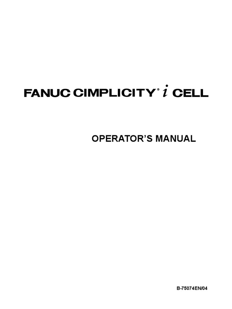 This manual describes the FANUC CIMPLICITY i CELL that operates on a personal computer (called PC for short). The FANUC CIMPLICITY i CELL is an application that runs on the CIMPLICITY HMI Plant Edition. Using the Ethernet, DNC2, reader/puncher, or Data Server communication function available with an NC produced by FANUC, the FANUC CIMPLICITY i CELL transfers data such as NC programs between the NC and personal computer. This manual is applicable to FANUC CIMPLICITY i CELL Version 2.0.
