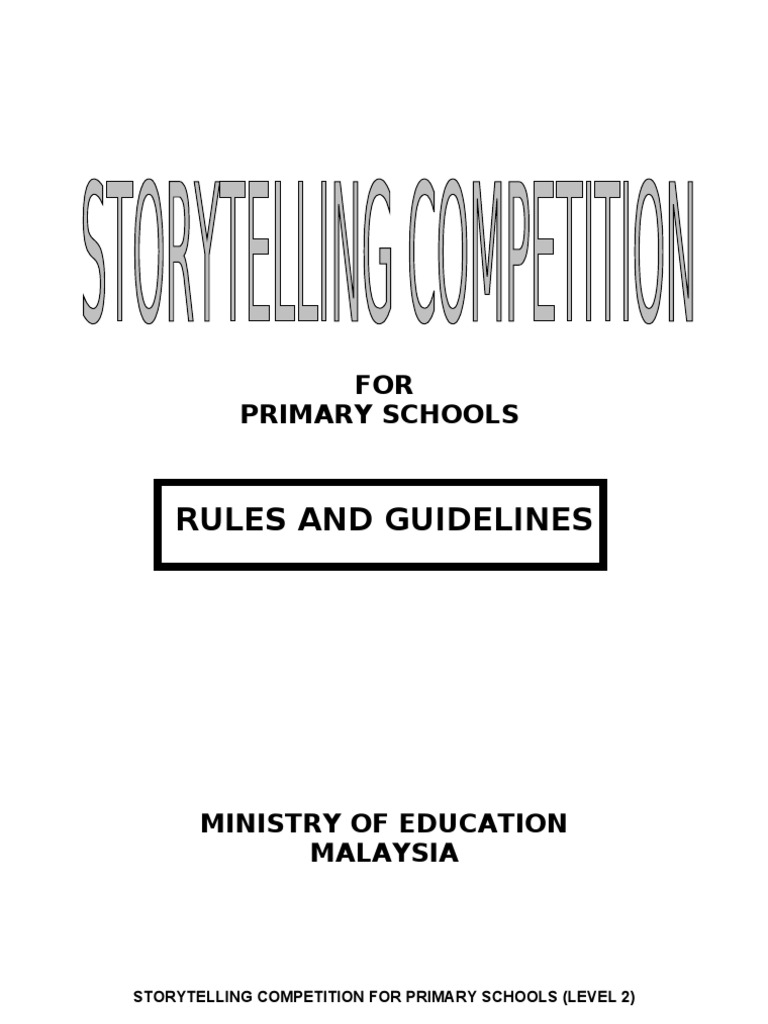 RULES AND GUIDELINES 1.0 INTRODUCTION 1.1 1.2 Storytelling is an effective teaching and learning activity to help improve the standard of English among pupils. The Storytelling Activity / Competition will be carried out at school, district / division, state and national levels.