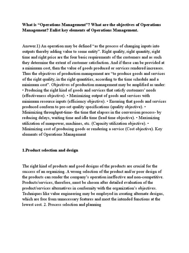 What Is "Operations Management"? What Are The Objectives of Operations Management? Enlist Key Elements of Operations Management