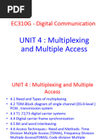 FDM: FDM is analogous to FDMA (see lecture 13). The frequency spectrum of a link is divided up into disjoint bands and a separate band is assigned to each session. FDM is used in the Cable-TV network. It is also used on legacy analog telephone connections Analog telephone system - In the 1930's FDM began to be used in the U.S. telephone network. In the telephone network, each analog voice channel is limited to ~3kHz by filters in the phone system. Historically, long-distance carrier systems multiplexed many analog channels using FDM over high capacity links such as microwave or coax. Each voice channel is assigned to a 4kHz band to provide adequate guard bands. In the U.S., AT&T designated a hierarchy of FDM schemes, as shown in the table on the next page. A similar, but not identical system, was standardized internationally by the ITU-T.