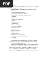 great variety of language devices: neutral and emotional words, archaic words and new coinages, metaphors and similes, foreign borrowings, dialectal, jargon and slang expressions, stilted phrases and obscenities, proverbs and quotations, illiterate or inaccurate speech, and so on and so forth. The source text may deal with any subject from general philosophical principles or postulates to minute technicalities in some obscure field of human endeavour. The translator has to tackle complicated specialized descriptions and reports on new discoveries in science or technology for which appropriate terms have not yet been invented. His duty is to translate diplomatic representations and policy statements, scientific dissertations and scathing satires, maintenance instructions and after-dinner speeches, etc. Translating a play the translator must bear in mind the requirements of theatrical presentation, and dubbing a film he must see to it that his translation fits the movement of the speakers' lips. He may be called upon to make his translation in the shortest possible time, at an official lunch or against the background noise of loud voices or rattling typewriters. In conference interpretation the translator is expected to keep pace with the fastest speakers, to understand all kinds of foreign accents and defective pronunciation, to guess what the speaker meant to say but failed to express due to his inadequate proficiency in the language he is using. In consecutive interpretation he is expected to listen to long speeches taking short notes, and then to produce his translation in a full or compressed form, giving all the details or only the main ideas. In some cases his customers will be satisfied with a most general idea of the original message, in other cases the translator will be taken to task for the slightest omission or minor error. Each type of translation has its own combination of factors influencing the translating process. The general theory of translation is supplemented, therefore, with a number of special translation theories identifying major types of translation work and describing the predominant features of each type.
