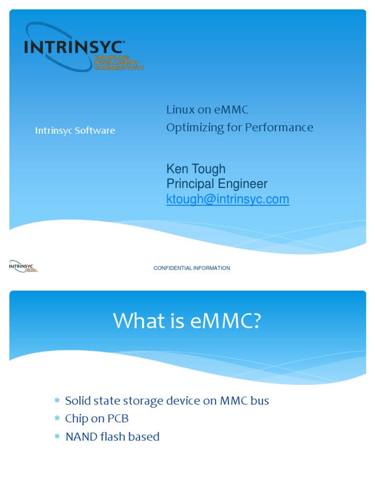 Linux on eMMC Optimizing for Performance Ken Tough Principal Engineer ktough@intrinsyc.com