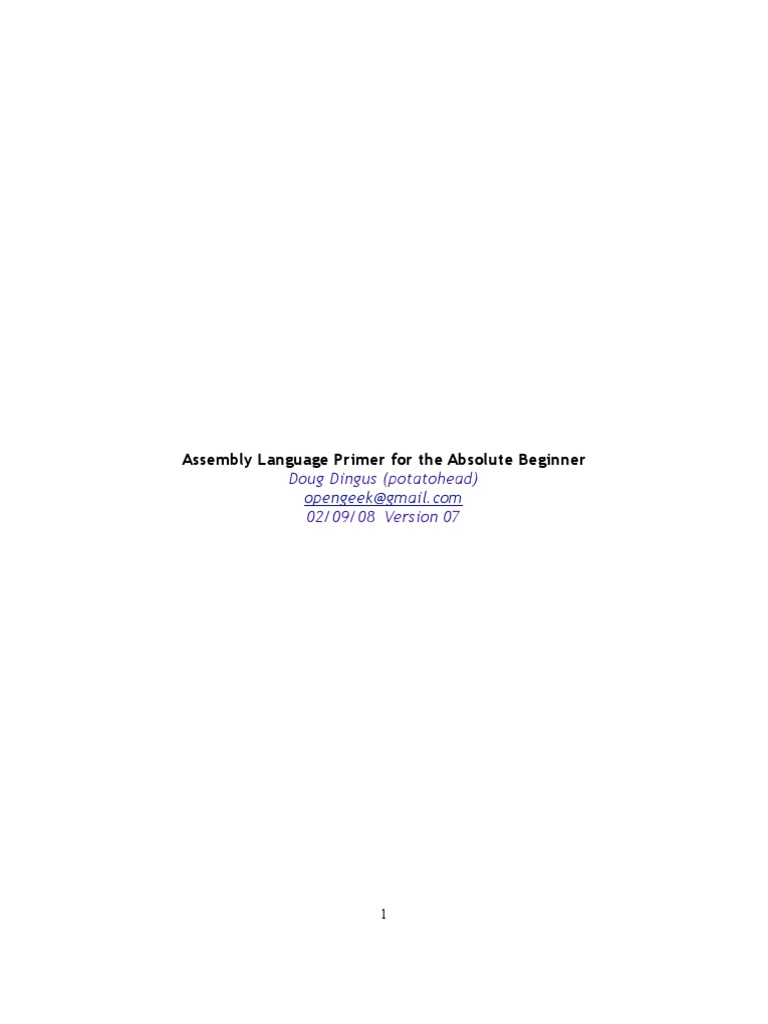 sorts of things before it actually does anything you want it to do. None of this is bad. It is however, a trade off worth noting. This document is now complete, with one basic assembly language program fully detailed. The related concepts, instructions, and terminology are explained in a detailed and conversational fashion. The reader will be left with a solid foundation understanding of the elements of assembly language programming good enough to consume more advanced texts and progress from there, just as the author is doing! Enjoy the ride!