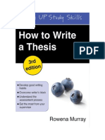 Very early in the article, in the rst sentence of the fourth paragraph, the authors state the rst hypothesis for this study. Once again, they make it very easy for you to follow their logic and argument. To introduce the rst hypothesis, they write: One purpose of the current study, therefore, was to examine the effectiveness of an instruction program in improving the performance of young struggling writers attending urban schools serving a high percentage of children from low-income families.3 Next, they introduce the intervention by writing, The experimental intervention, self-regulated strategic development (SRSD) is compatible with current theories on the development of competence in subject-matter domain.4 Then they explain how this intervention is positioned within the theoretical framework of learning. Soon afterward, they provide their reasons for identifying the sample they chose to research. To explain the rationale for sample selection, the authors rst explain the current limitations in the literature by stating that the intervention had only been tested in one study with third-grade children, and data are limited on the effects of the model on writers knowledge and motivation. The authors demonstrate how their research adds something new to the eld when they state: In the present study, we extended research on SRSD and writing by assessing the impact . . . on the writing . . . of even younger children (second graders).5 For what it is worth, I will point out what interests me about this article. First, the intervention basically teaches young students how to develop and organize ideas for writing a paper. This is prewriting. These authors are teaching second-grade students how to engage in prewriting, and the data show that young children exhibit stronger writing performance as a result. Second, in one intervention group, the students learned about prewriting in a peer support setting. The young students shared what worked for them and what did not, and they helped each other to apply what they were learning to other subjects. The students in the intervention group with peer support showed even greater improvements, albeit on a more limited range of writing outcomes. While I contend that prewriting and writing groups are important for dissertation
