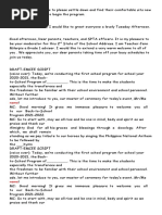 e, pls. settle down. Thank you! To our City Jail Warden JCI WILSON P BANASEN sir, to our Chief Personnel and Records Management and conc. Chief Human Resource Division JSI APRIL ROSE W AYANGWA MAAM, to our distinguished guest the woman of the hour Ms. Garcia maam, to other senior and junior officers present, Jail Non-Commissioned Officers, ladies and gentleman Isang Makakalikasang Umaga po sa ating lahat. Welcome to the first Seminar Workshop in Public Speaking of the Bureau of Jail Management and Penology Cordillera Administrative Region. To begin with, let us all stand for the singing of the national anthem to be followed by an invocation to be led by JO1 Prima P Nguynguyon. Please take your seats sir/maam! According to Survey Public Speaking is the number one fear in America. Death is number two. Anyways that must be a joke! A communication expert one says that you can speak well if your tongue can deliver the message of your heart! I believed this seminar workshop will completely entice the desire of our silent hearts. And to finally open todays program may we humbly request JCI WILSON P BANASEN for the opening remarks sir?! Thank you sir for the warm welcome=) And now, may we precede to the roll call of participants May we request to all the participants to pls stand as your province or unit is called. Let us have a little game here sir/maam trivia-like statements then if the statements are referring to your respective province pls. stand a game of knowledge
