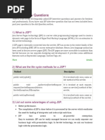 A. jspDestroy() B. jspInit() C. _jspService() D. getParameter() Correct Answer is : C Question : 4 When u try to redirect a page after you already have written something in your page, the error encountered is ?Response has already been committed error? or popularly called 402 error.? A. true B. false C. none of the above D. none of the above Correct Answer is : A Question : 5 All the ___________ data is kept at the application server ___________ data is kept at the web server ? A. dynamic, static B. static, dynamic C. HTML, Servlet D. Servlet, HTML Correct Answer is : A Question : 6 Which tag in the jsp is used to define the error page? A. <%@page isErrorPage="yes" %> B. <%@page isErrorPage="true" %> C. <%@page isErrorPage="false" %> D. None of the above Correct Answer is : B Question : 7 Under JSP 1.0 , the implicit object which can be used for reference is ?this?. It is used to refer to the ______________ ?