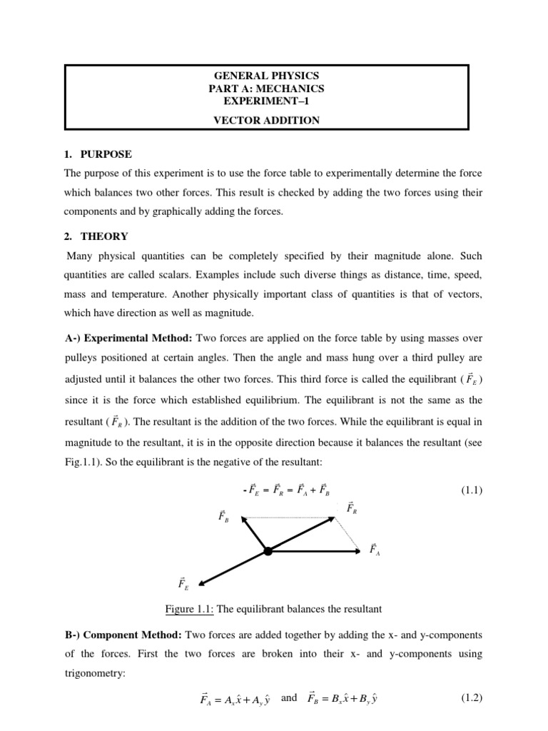 The purpose of this experiment is to use the force table to experimentally determine the force