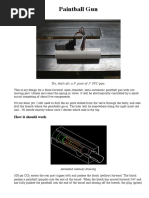 It is very important to ensure that the core is straight and follows the line of the barrel. If the alignment is slightly off, the silencer will probably cause inaccuracy and increased ball breakage. Step 3. Design the core porting This is the crucial stage of construction where you create the holes in the core which will vent the gas from the barrel. Take some time to consider the size, shape, and layout of the holes; their arrangement may very well alter the course of the paintball. Consider the design of the different barrels and muzzle brakes available. Should you create a spiralling, helical pattern to simulate rifling? Should you stagger the holes to maximize gas dissipation? What shape should you make the vents? These are all questions to be addressed when laying out the core baffles. I usually run six lines around the circumference of the core and stagger every other row of holes. To put it in other terms, if you were to flatten out the core and create a chess or checker board of six rows across the diameter, you would then drill a hole in each white square, leaving the other squares untouched. The space between holes along the length of the core is fairly arbitrary, but for a 3/8 hole, I usually center the holes 1 apart. (This spacing would give you a chess board with rectangular squares instead of square ones. I know its confusing, but Im trying my best.) Step 4. Create the core porting Once you have laid out the position of the porting, you simply have to create the holes in the core. For a round hole, simply drill a small pilot hole with a small drill bit and then use a hand drill to create the final hole. The pilot hole will help keep the larger drill bit from wandering when youre trying to use the hand drill. You may wish to get fancy and shape the circular holes or create elliptical ports. Select a design which you believe will be most effective. I used the Dremel sanding attachment to create a gradual incline along the path of the paintball, the theory being that the gas would be scooped up into the foam. Step 5. Final touches You may wish to add special features to the core, depending on the design of the outer casing and its relation to the core. In the past, I have attempted to add o-ring grooves at the front and rear in an