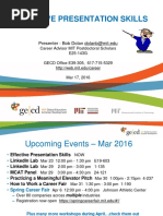 to the material, well executed and informative to the audience. Strong, clear, speaking voice easily understood by audience. Use of creativity keeps audience engaged. Speaker conveys confidence in talking about the topic. Excellent eye contact with audience throughtout presentation.