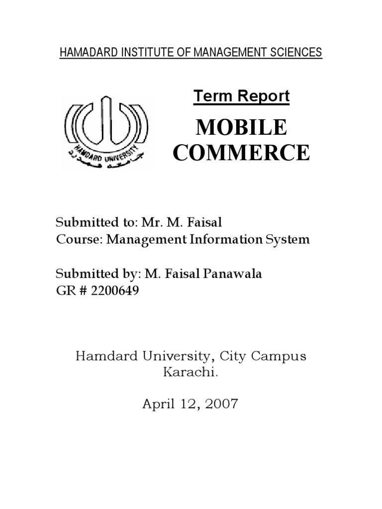 Enclosed find herewith a term report on M-commerce. This report is prepared on