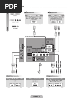 N The product colour and shape may vary depending on the model. 1 PC IN Connect to the video output jack on your PC. N If your PC supports an HDMI connection, you can connect this to the HDMI IN 1 (DVI), 2 or 3 terminal. N If your PC supports a DVI connection, you can connect this to the HDMI IN 1 (DVI) terminal. 2 PC/DVI AUDIO IN Connect to the audio output jack on your PC. DVI audio outputs for external devices. 3 ANT IN Connects to an antenna or cable TV system. 4 AUDIO OUT [R-AUDIO-L] Connect RCA audio cables to AUDIO OUT [R-AUDIO-L] on the rear of your set and the other ends to corresponding audio in connectors on the Amplifier or DVD Home Theatre. 5 HDMI IN 1(DVI), 2, 3 Connects to the HDMI jack of a device with an HDMI output. N No additional Audio connection is needed for an HDMI to HDMI connection. N What is HDMI? HDMI(High-Definition Multimedia Interface), is an interface that enables the transmission of digital audio and video signals using a single cable. The difference between HDMI and DVI is that the HDMI device is smaller in size and has the HDCP (High Bandwidth Digital Copy Protection) coding feature installed. N Use the HDMI IN 1(DVI) jack for DVI connection to an external device. Use a DVI to HDMI cable or DVI-HDMI adapter (DVI to HDMI) for video connection and the PC/DVI AUDIO IN jacks for audio. When using an HDMI / DVI cable connection, you must use the HDMI IN 1(DVI) jack.