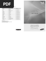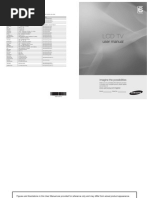 Nombre del modelo Tamao de pantalla (Diagonal) Resolucin de PC (ptima) Sonido (Salida) Dimensiones (An x Pr x Al) Sin el soporte Con el soporte Peso Sin el soporte Con el soporte Consideraciones medioambientales Temperatura de funcionamiento Humedad de funcionamiento Temperatura de almacenamiento Humedad de almacenamiento Giro del soporte izquierda/derecha Nombre del modelo Tamao de pantalla (Diagonal) Resolucin de PC (ptima) Sonido (Salida) Dimensiones (An x Pr x Al) Sin el soporte Con el soporte Peso Sin el soporte Con el soporte Consideraciones medioambientales Temperatura de funcionamiento Humedad de funcionamiento Temperatura de almacenamiento Humedad de almacenamiento Giro del soporte izquierda/derecha 0 LN37B450 37 pulgadas 1360 x 768 @ 60Hz 10 W x 2 913 x 93 x 605 mm 913 x 300 x 656 mm 11 kg 14 kg LN26B450 26 pulgadas 1360 x 768 @ 60Hz 10 W x 2 670 x 75 x 455 mm 670 x 216 x 495 mm 7 kg 8 kg LN32B450 32 pulgadas 1360 x 768 @ 60Hz 10 W x 2 798 x 85 x 531 mm 798 x 252 x 577 mm 9 kg 11 kg LN32B460 32 pulgadas 1360 x 768 @ 60Hz 10 W x 2 798 X 77 X 519 mm 798 X 240 X 579 mm 9 kg 12 kg