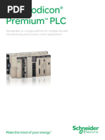 Delivering more flexibility and openness, the Modicon Premium PLC offers a highly versatile, cost-effective control solution. It enables you to standardize on a single platform for multiple discrete manufacturing and process control applications while at the same time, allowing you to take advantage of a flexible architecture that integrates multiple CPU levels, plug-and-play rack support and open communication standards. It also features multi-axis interpolated motion control, weigh scale monitoring, integrated Preventa safety relays and reflex functionality for fast, independent processing of critical input/output (I/O).