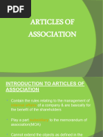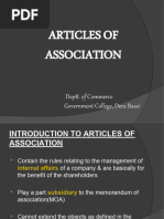 Articles of Association (AOA): The AOA of a Co. are its by-laws or rules or regulations that govern the management of its internal affairs and the conduct of its business.