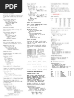 FILE* f=fopen("filename", // Mode may also be "w" fclose(f); fprintf(f, "x=%d", 3); "%5d %u %-8ld" "%o %x %X %lx" "%f %5.1f" "%e %g" "%c %s" "%%" sprintf(s, "x=%d", 3); printf("x=%d, 3); fprintf(stderr, ... getc(f); ungetc(c, f); getchar(); putc(c, f) putchar(c); fgets(s, n, f); gets(s) fread(s, n, 1, f); fwrite(s, n, 1, f); fflush(f); fseek(f, n, SEEK_SET); ftell(f); rewind(f); feof(f); ferror(f); perror(s); clearerr(f); remove("filename"); rename("old", "new"); f = tmpfile(); tmpnam(s); "r"); // Open for reading, NULL (0) if error (write) "a" append, "a+" update, "rb" binary // Close file f // Print "x=3" Other conversions: // int width 5, unsigned int, long left just. // octal, hex, HEX, long hex // float or double: 123.000000, 123.0 // 1.23e2, use either f or g // char, char* // % // Print to array of char s // Print to stdout (screen unless redirected) // Print to standard error (not redirected) // Read one char (as an int) or EOF from f // Put back one c to f // getc(stdin); // fprintf(f, "%c", c); // putc(c, stdout); // Read line into char s[n] from f. NULL if EOF // fgets(s, INT_MAX, f); no bounds check // Read n bytes from f to s, return number read // Write n bytes of s to f, return number written // Force buffered writes to f // Position binary file f at n // Position in f, -1L if error // fseek(f, 0L, SEEK_SET); clearerr(f); // Is f at end of file? // Error in f? // Print char* s and error message // Clear error code for f // Delete file, return 0 if OK // Rename file, return 0 if OK // Create temporary file in mode "wb+" // Put a unique file name in char s[L_tmpnam]