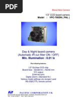 VXP IR600D Pixel Plus 1089p CMOS Sensor 728(H) x 488(V) D1 6.35 um x 7.4 um. 4622.8 um x 3611.2 um 1/3" Pixel Plus 54 MHz. 33.3 9mW) @ Dynamic 0.1 Lux (f2.0) IR on 000lux Not Available Yes. Day time colour , Night time switch to B/w 44.4 dB 4 Zone 60 fps (720 x 480) Composite 1 Vp-p / 75 Ohms DC 9-12v 10%+- , 75mA 10% +-