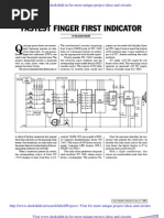 For audio-visual indication, one may use a small buzzer (usually built inside quartz alarm time pieces) in parallel with one small (3mm) LCD in place of LED1 and resistor R5. In such a case, the current consumption of the circuit will be around 7 mA. Alternatively, one may use two 1.5V R6- or AA-type batteries. Using this gadget, one can also quickly detect fused small filament bulbs in serial loops powered by 230V AC mains. The whole circuit can be accommodated in a small PVC pipe and used as a handy broken-wire detector. Before detecting broken faulty wires, take out any connected load and find out the faulty wire first by continuity method using any multimeter or continuity tester. Then connect 230V AC mains live wire at one end of the faulty wire, leaving the other end free. Connect neutral terminal of the mains AC to the remaining wires at one end. However, if any of the remaining wires is also found to be faulty, then both ends of these wires are connected to neutral. For single-wire testing, connecting neutral only to the live wire at one end is sufficient to detect the breakage point. In this circuit, a 5cm (2-inch) long, thick, single-strand wire is used as the test probe. To detect the breakage point, turn on switch S1 and slowly move the test probe closer to the faulty wire, beginning with the input point of the live wire and proceeding towards its other end. LED1 starts glowing during the presence of AC voltage in faulty wire. When the breakage point is reached, LED1 immediately extinguishes due to the non-availability of mains AC voltage. The point where LED1 is turned off is the exact broken-wire point. While testing a broken 3-core rounded cable wire, bend the probes edge in the form of J to increase its sensitivity and move the bent edge of the test probe closer over the cable. During testing avoid any strong electric field close to the circuit to avoid false detection.