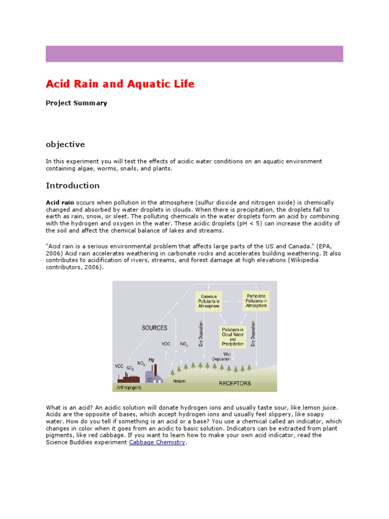 You can also try watering a series of plants with neutral and acidic water. How well will plants Try these other Science Buddies experiments to test the effects of toxins on aquatic